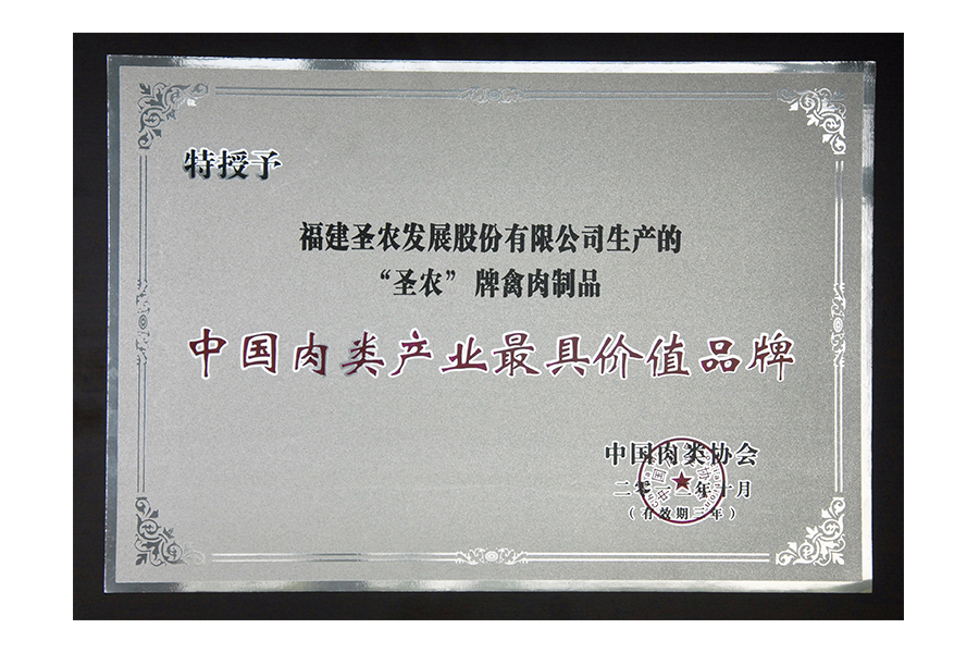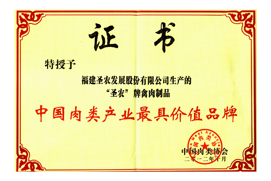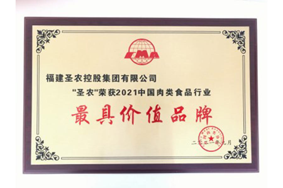 • 2021(圣农集团)中国肉类食品行业——最具价值品牌