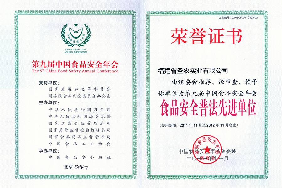 • 2021(圣农集团)中国肉类食品行业先进企业