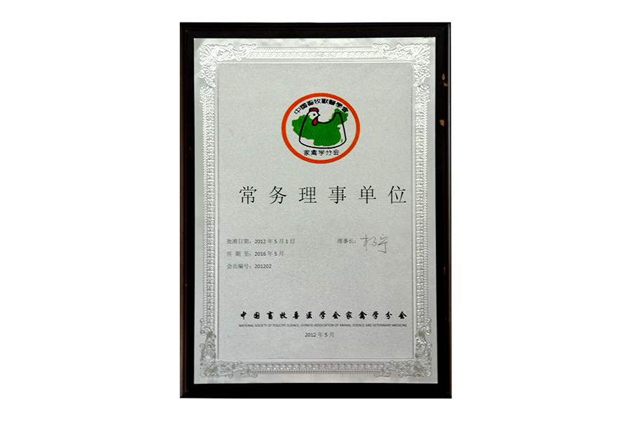 • 2012年中国畜牧兽医学会家禽学分会常务理事单位