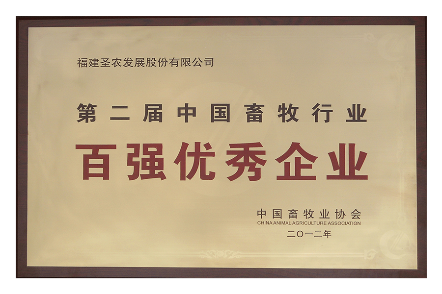 • 2012年第二届中国畜牧行业百强优秀企业