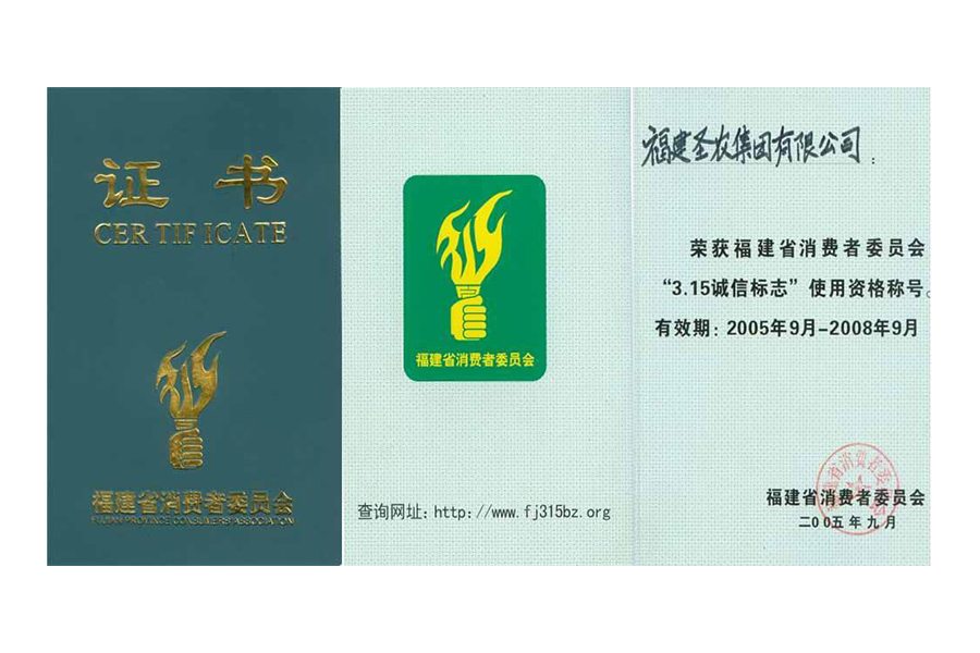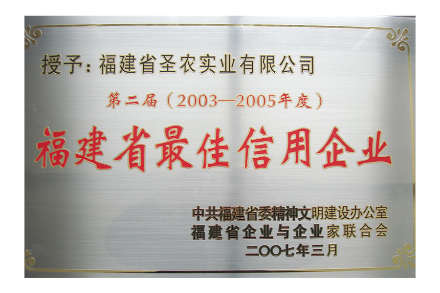 • 2007年福建省最佳信用企业