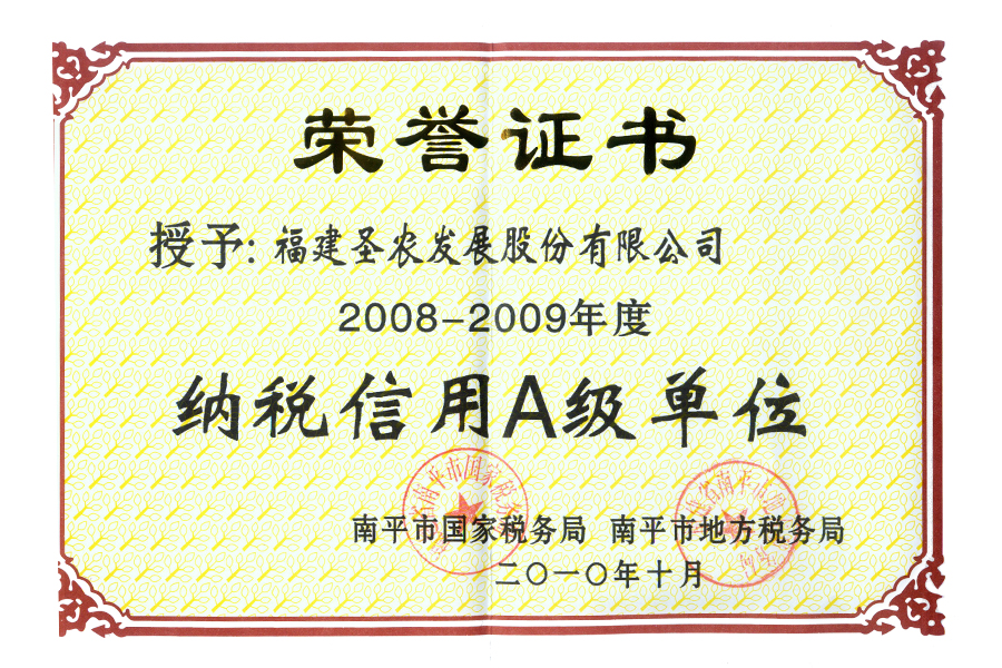 • 2008-2009年度纳税信用A级单位