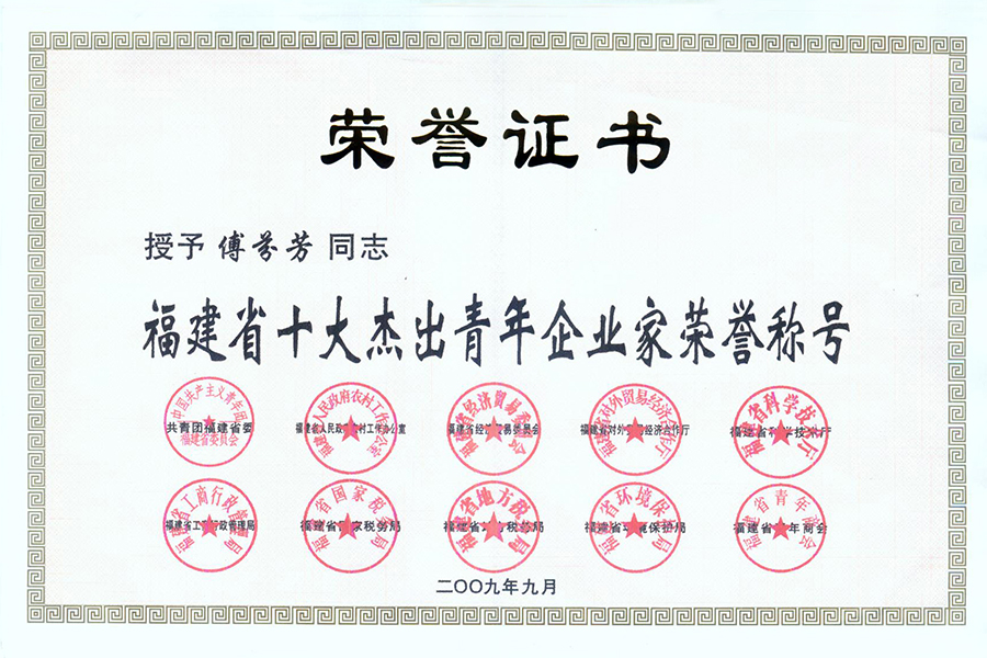 • 2009年福建省十大杰出青年企业家