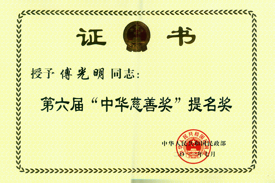 • 2011年傅光明获第六届“中华慈善奖”提名奖