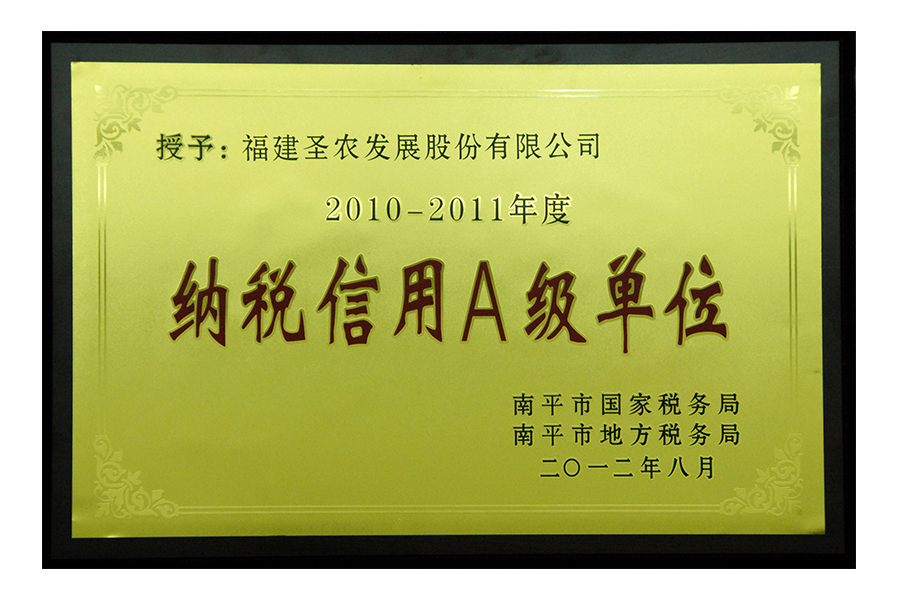 • 2010-2012年度纳税信用A级单位