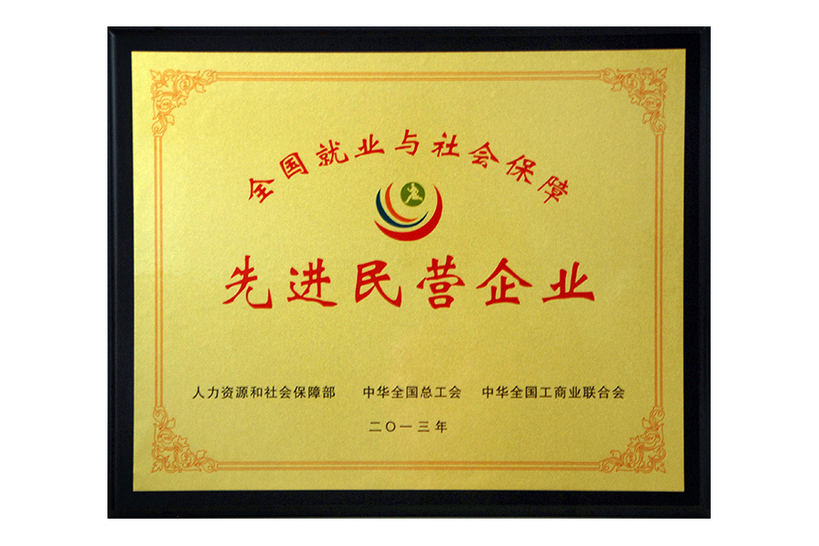 • 2013年全国就业与社会保障先进民营企业牌匾