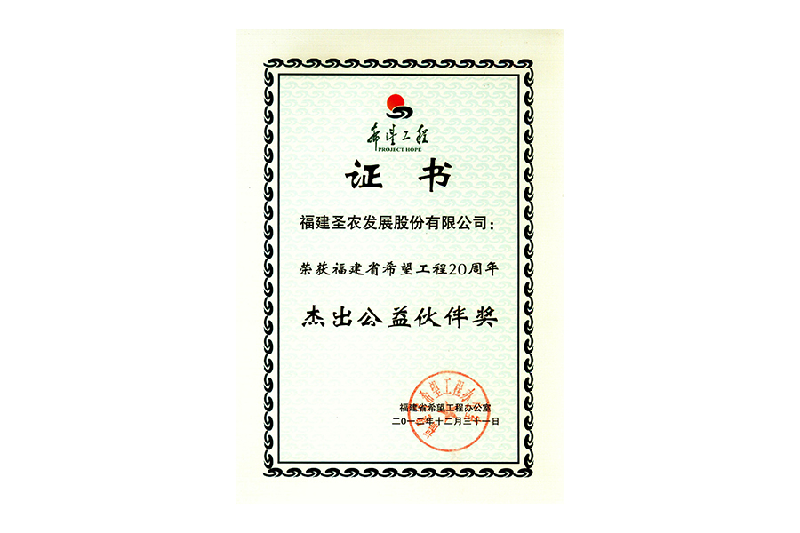 • 2012年福建省希望工程20周年杰出公益伙伴奖