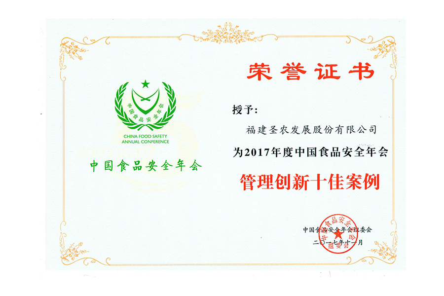 • 2017年中国食品安全年会.管理创新十佳案例.