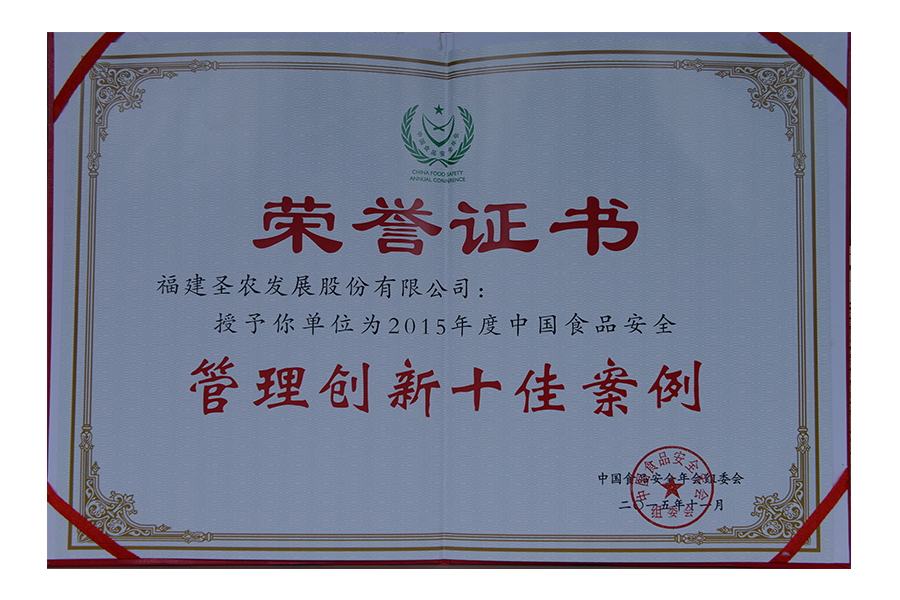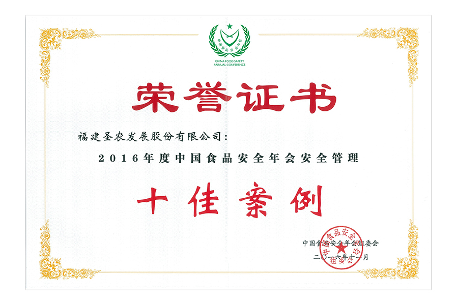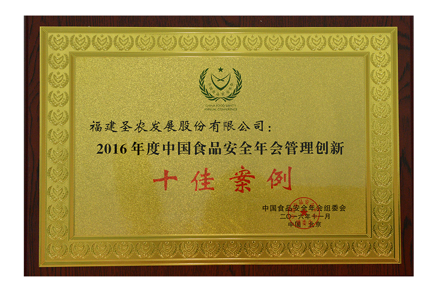 • 2016年中国食品安全年会管理创新十佳案例
