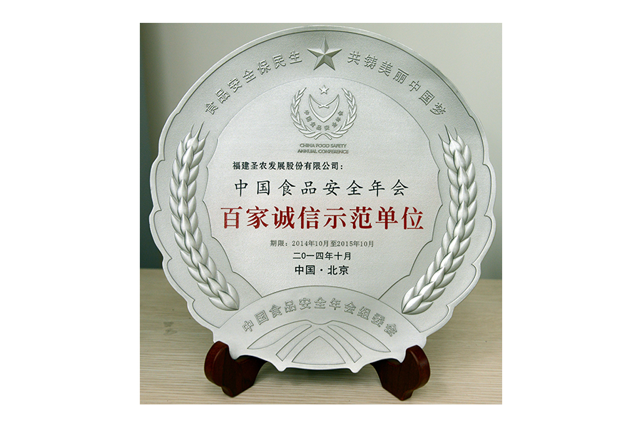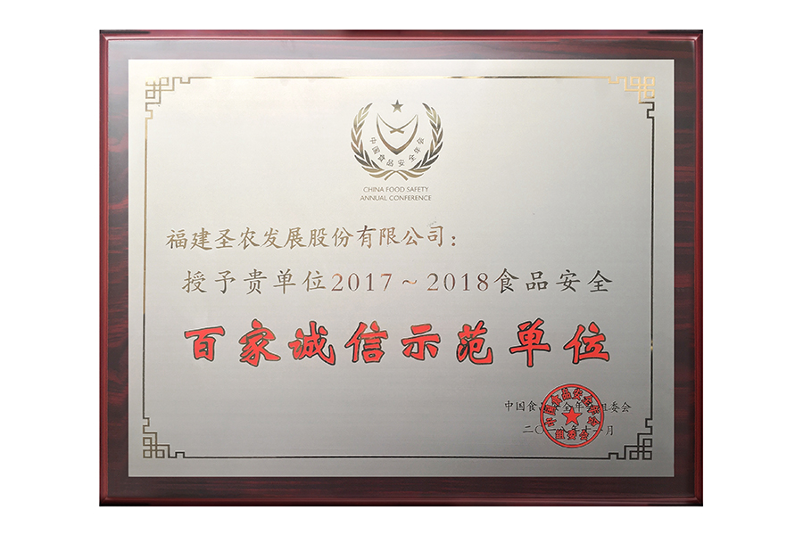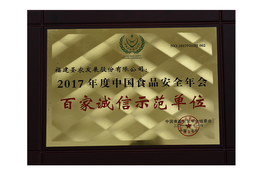 • 2017年中国食品安全年会 百家诚信示范单位.牌匾