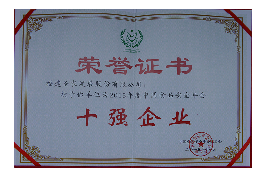 • 2011年中国食品安全十强企业