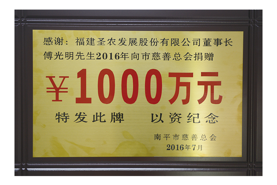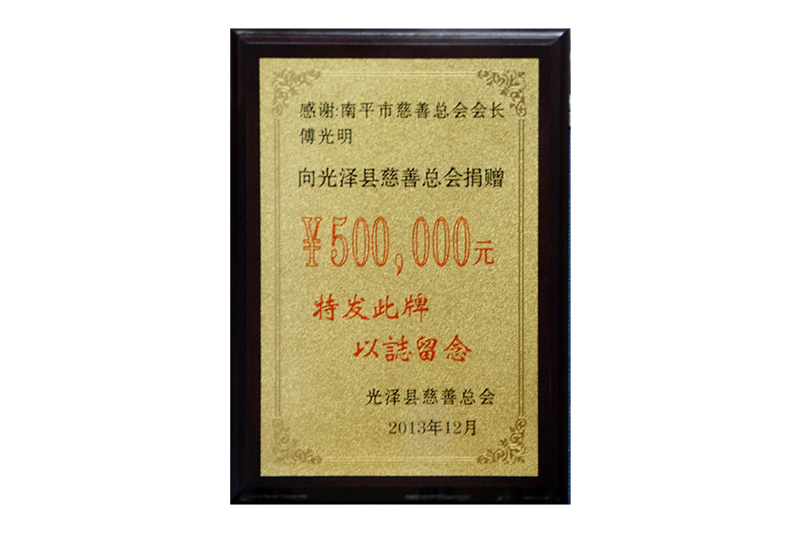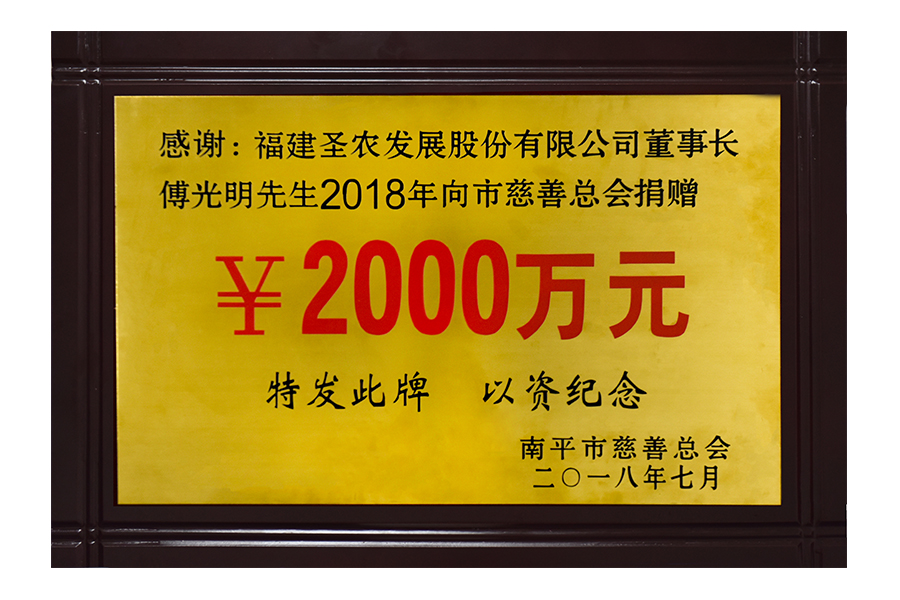 • 2018年向南平市慈善总会捐赠2000万元匾