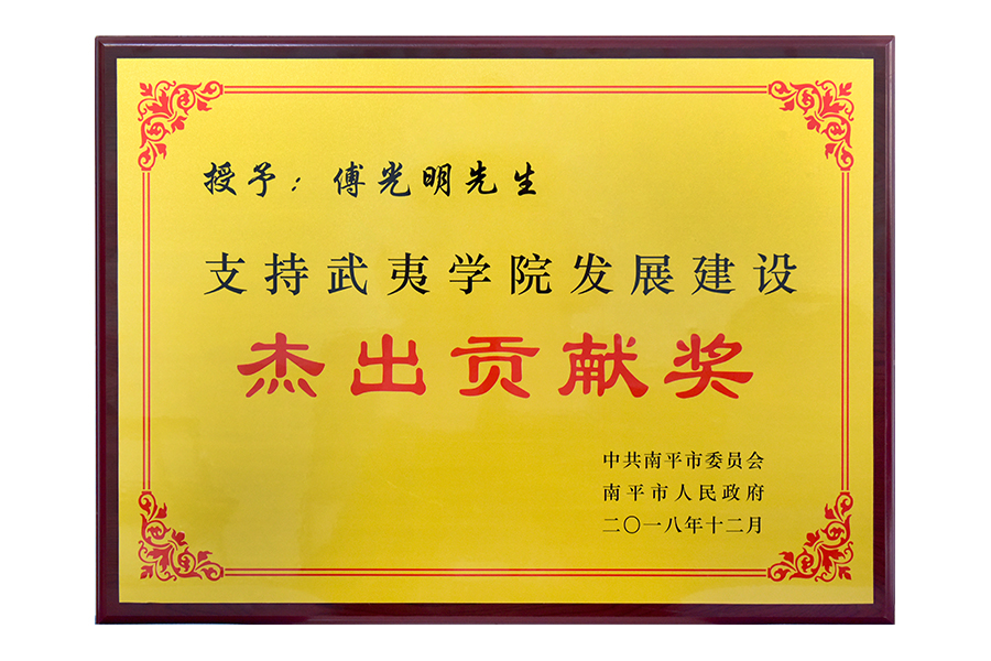 • 2018年傅光明支持武夷学院发展建设杰出贡献奖