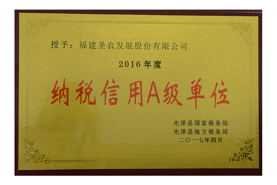 • 2017年4月-2016年度纳税信用A级单位