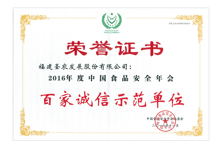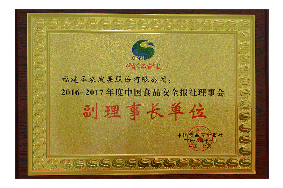 • 2016年中国食品安全报社理事会副会长单位