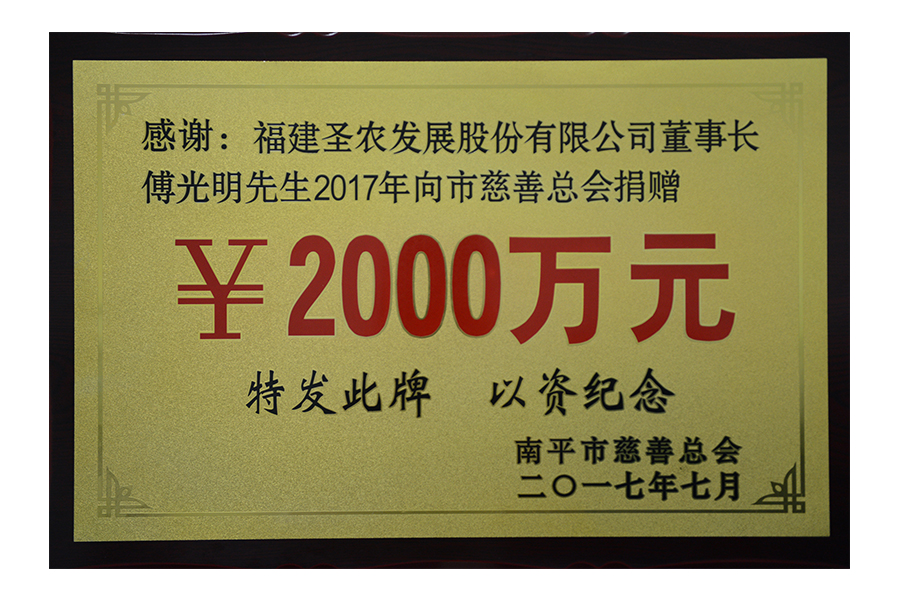 • 2017年(傅光明)向南平市慈善总会捐赠两千万