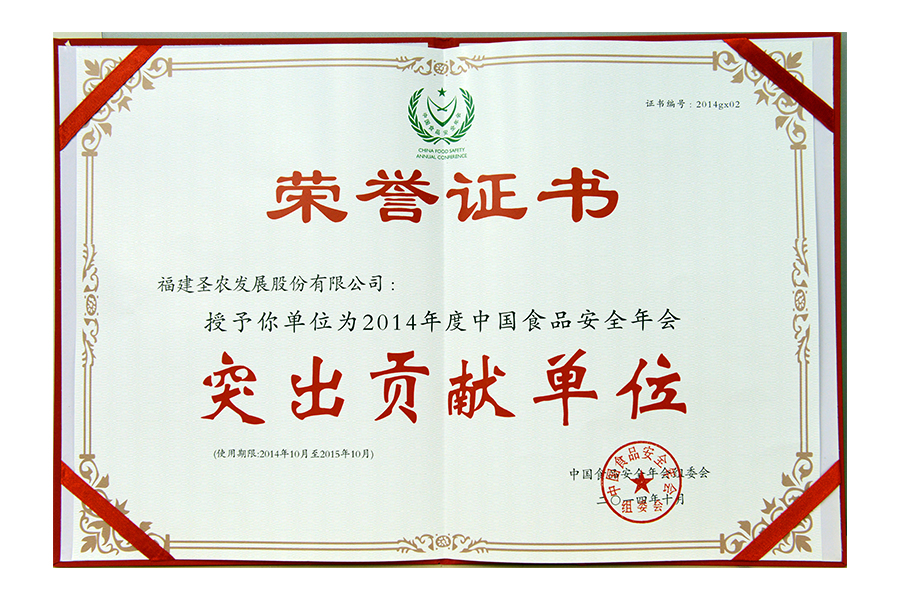 • 2014年突出贡献单位证书