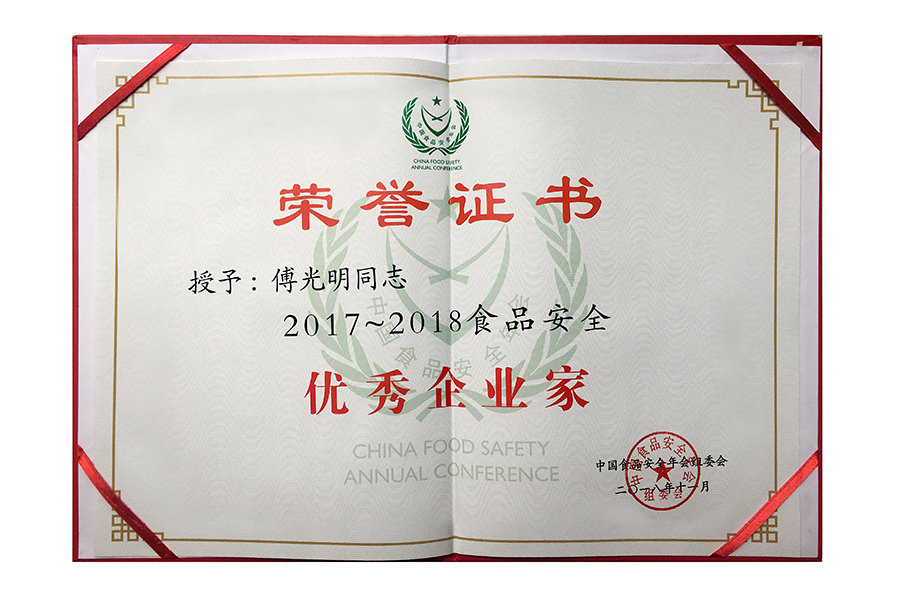• 2018食安优秀企业家证书