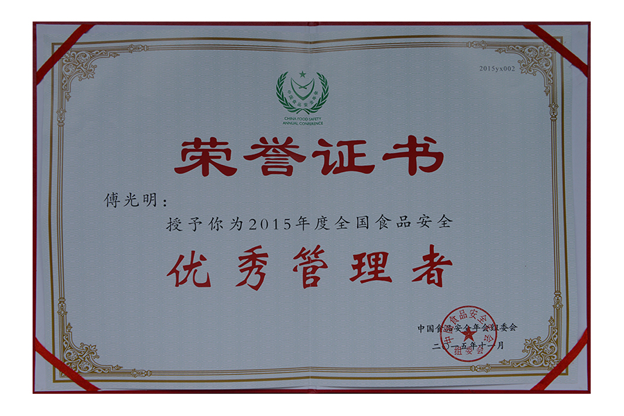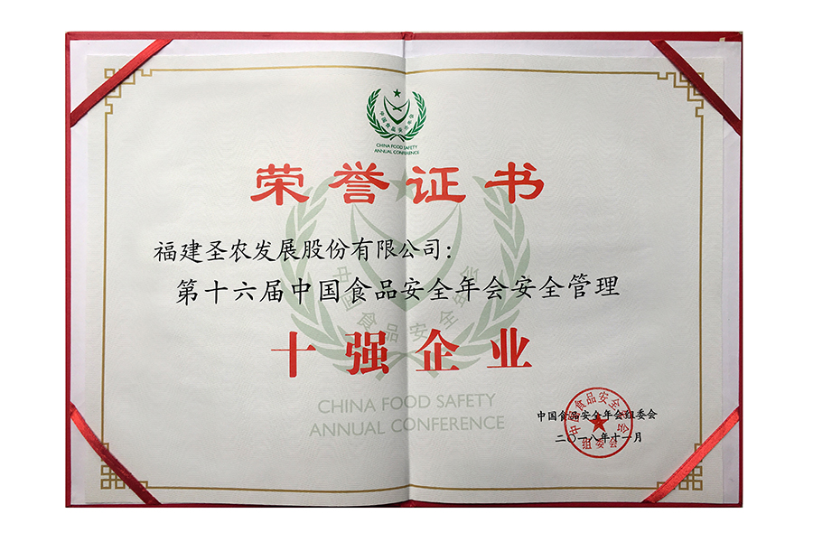 • 2017年中国食品安全年会.安全管理十强企业.证书