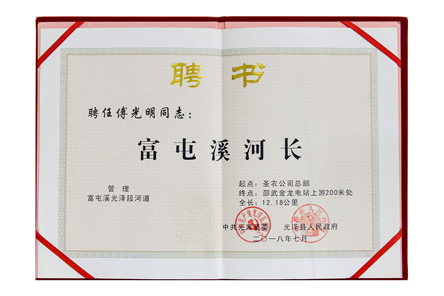 • 2018年傅光明富屯溪河长荣誉证书