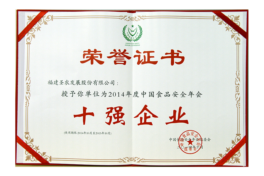 • 2014年十强企业证书