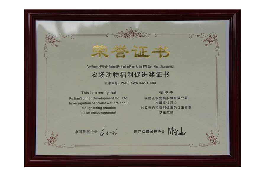 • 中国首家肉鸡动物福利认证