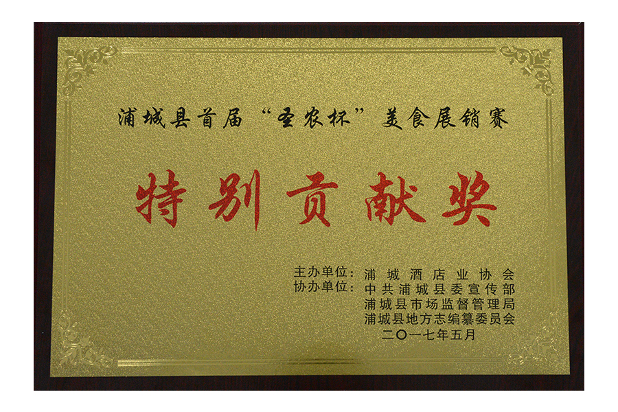 • 2017年浦城首届“圣农杯”美食展销赛特别贡献奖