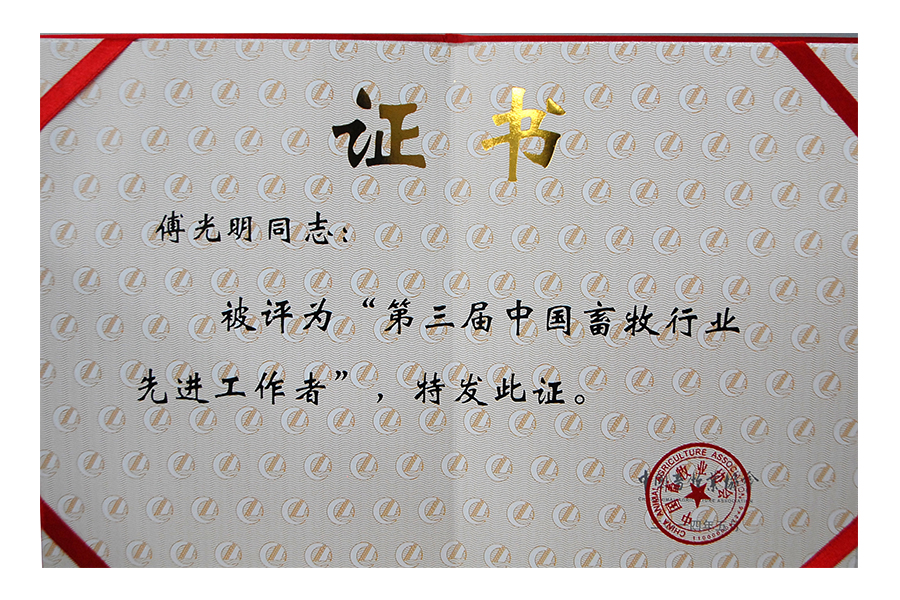 • 2014年(傅光明)第三届中国畜牧行业先进工作者