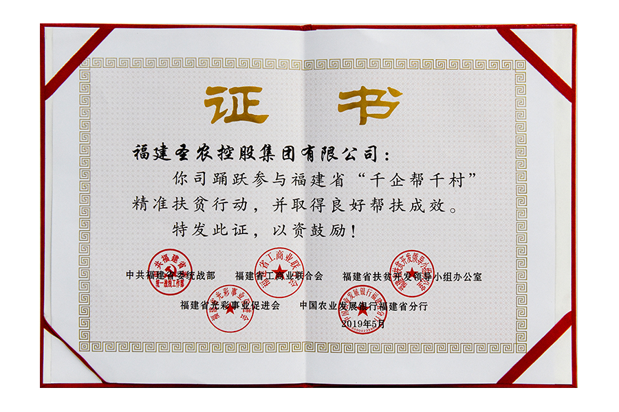 • 2019年福建圣农控股集团千企帮千村证书