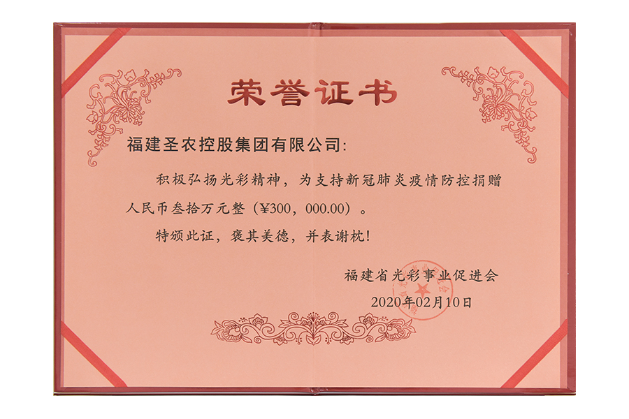 • 2020年支持新冠疫情防控捐赠三十万荣誉证书