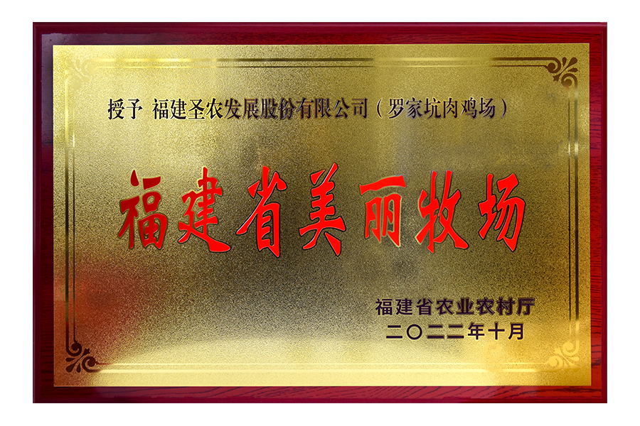 • 2023年福建农业农村厅授予圣农发展(罗家坑肉鸡场)福建省美丽牧场牌匾