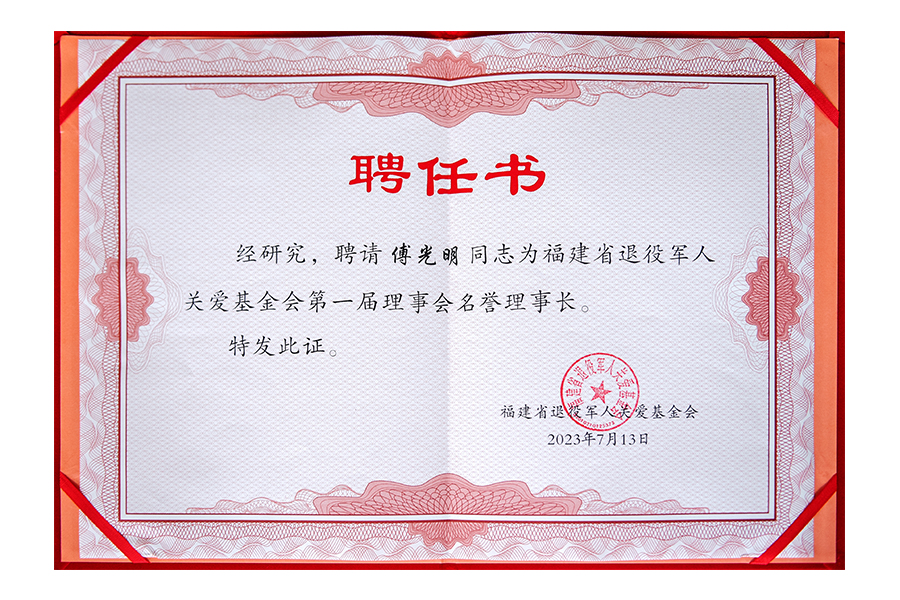 • 2023年福建省退役军人关爱基金会第一届理事会名誉理事长