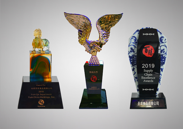 4月12日在“敏捷创新 攻坚制胜——2019百胜中国供应链合作伙伴大会”上,圣农斩获“精诚合作奖”、“百胜中国质量奖”、“卓越供应链奖”三项大奖。