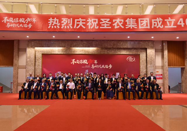 采撷荣光,激励共进。圣农栉风沐雨40载,离不开创始人的坚守初心,勇于开拓,也离不开很多圣农人的匠心沉淀,不懈努力。企业与员工的双向奔赴成就了圣农的不惑春秋。本次40周年庆,圣农特此举行荣誉表彰活动,对40年来在公司不同历史时期做出突出贡献的40人以及司龄超过30年以上的在职员工进行表彰。